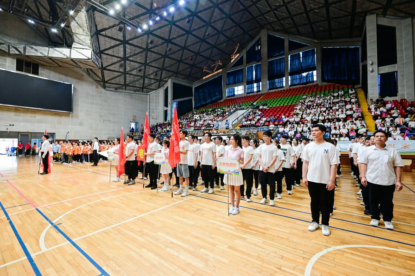 企业员工怀着期待与兴奋的心情完成入场签到后,场馆内的气氛逐渐变得更为热烈。动感音乐响起,运动会开幕式开始了,各个队伍依次入场表演,展示出各自的风采,也表现出了每个员工良好的精神面貌。